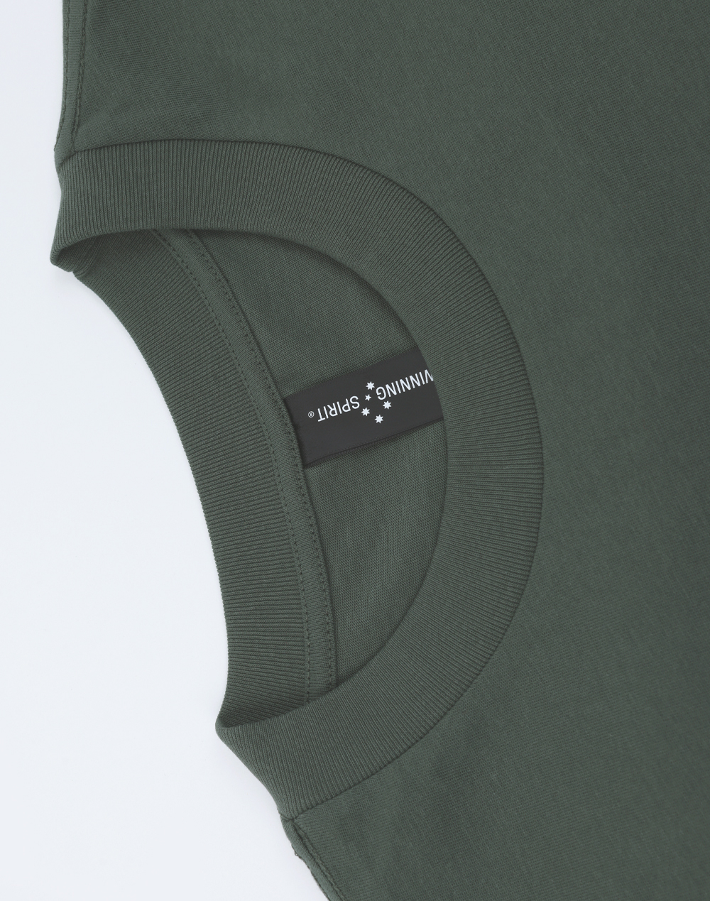 - Non-topstitched, narrow width, rib collar